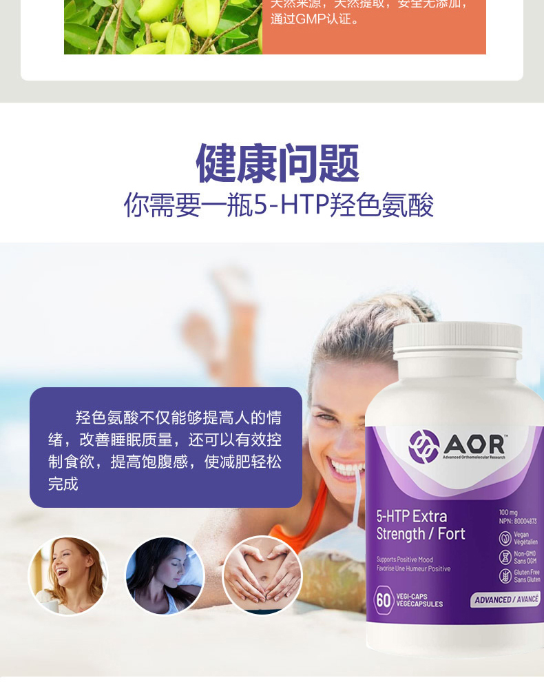 AOR 5-HTP抗抑郁胶囊 加拿大专业保健品品牌