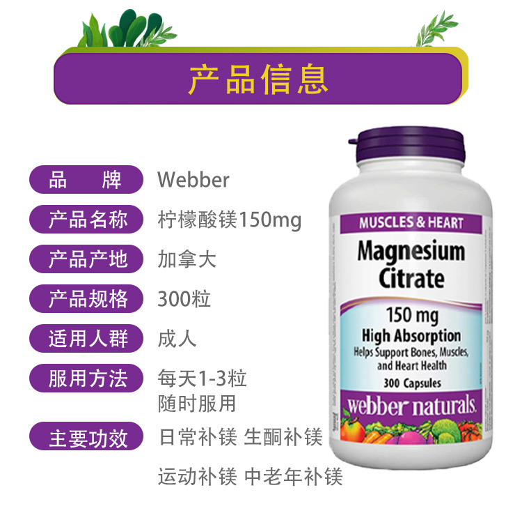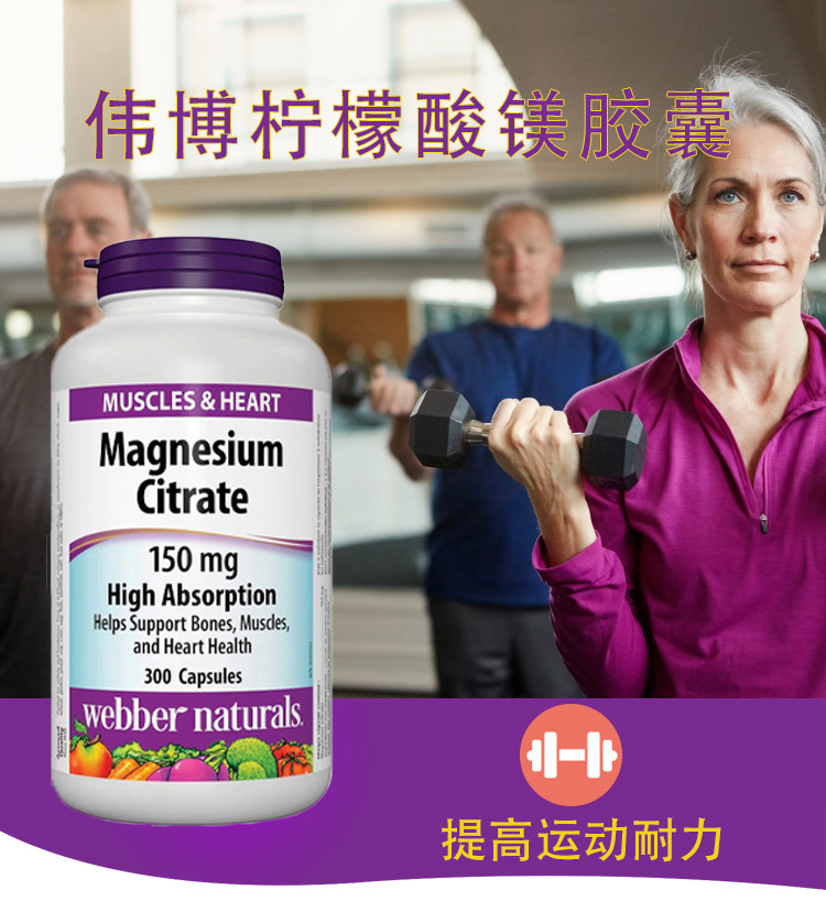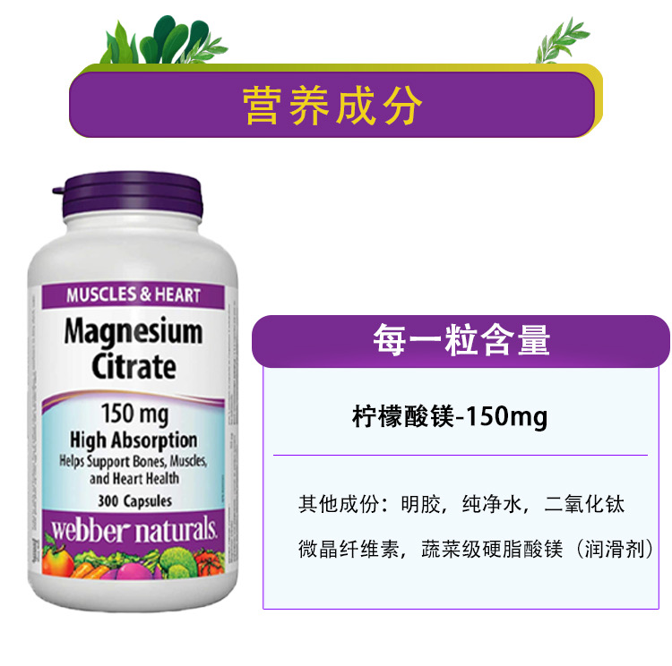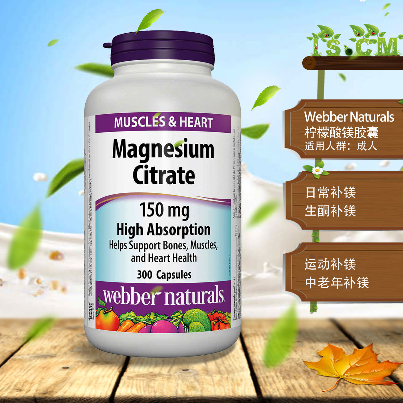 Webber Naturals 高效吸收柠檬酸镁胶囊 缓解肌肉酸痛
