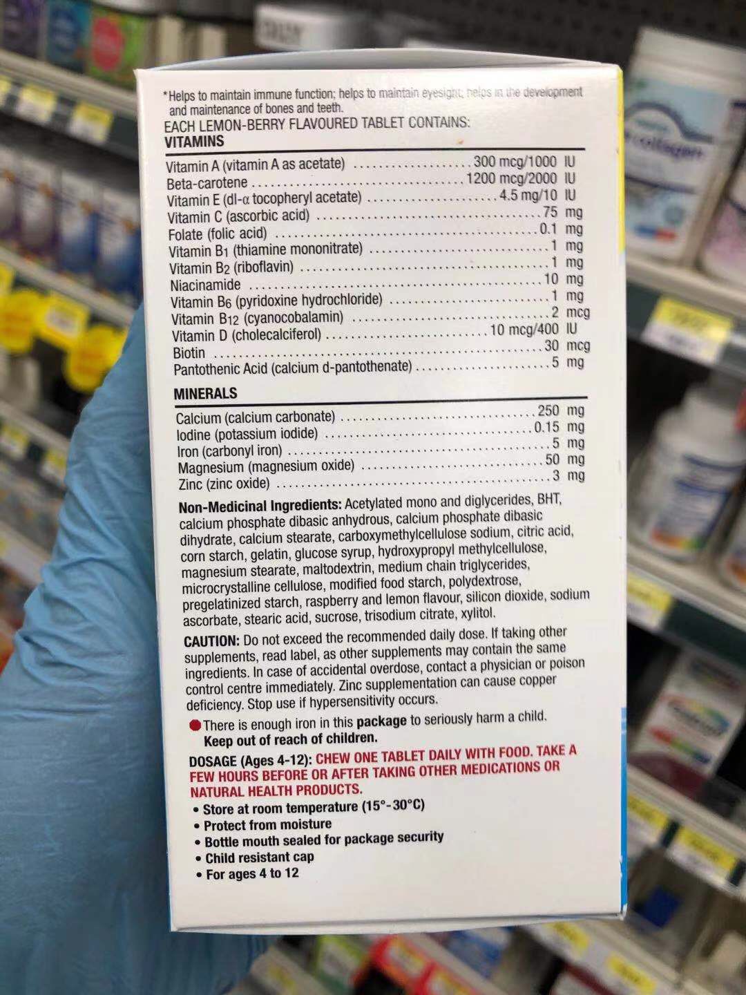 片剂成份说明:(以一片为单位)-针对宝宝适当调整各种微量元素的含量