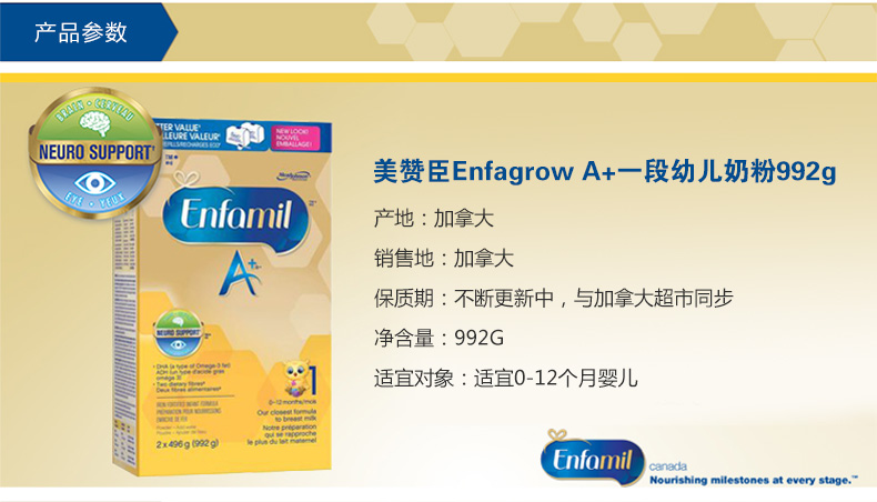 【产品名称】:加拿大美赞臣金装1段奶粉