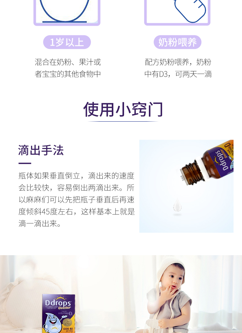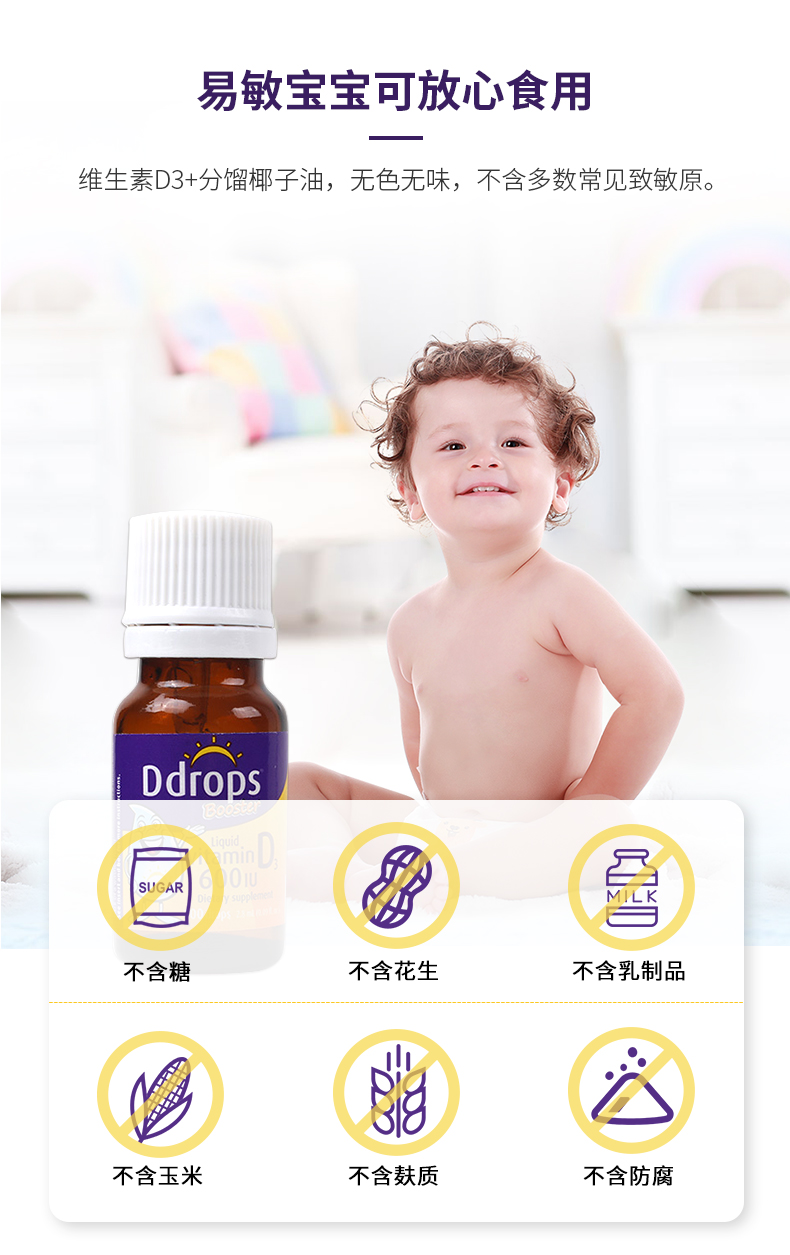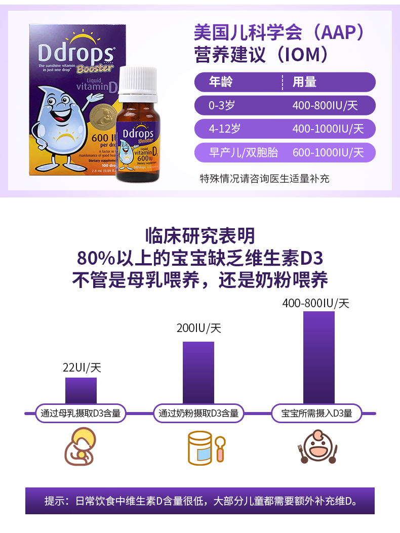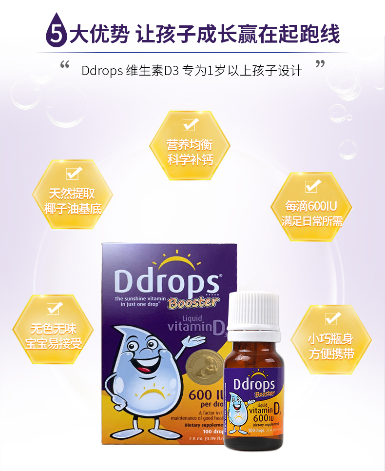 Ddrops儿童成人维生素D3滴剂600国际单位
