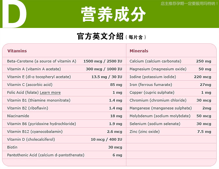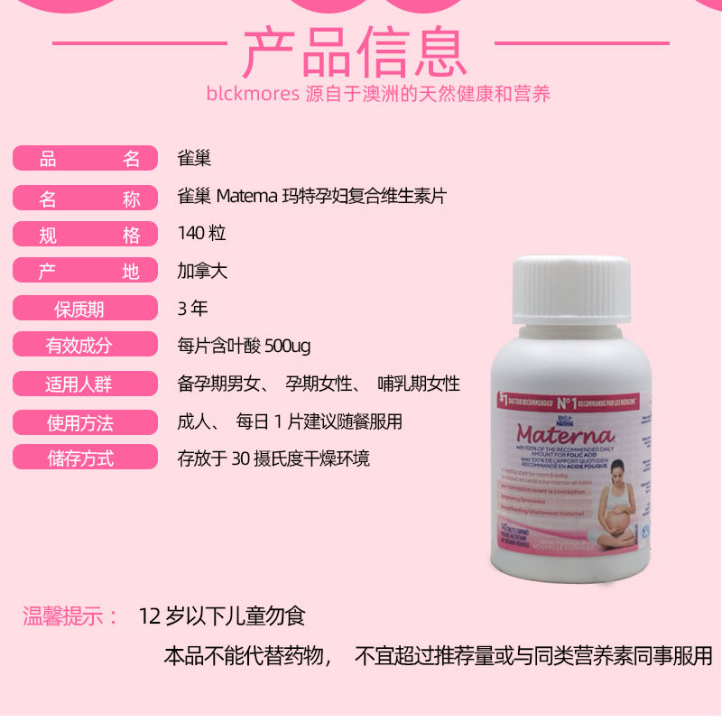 NESTLÉ 雀巢玛特纳孕妇叶酸片 富含各种孕妇所需维他命 高质备孕首选 特价囤货