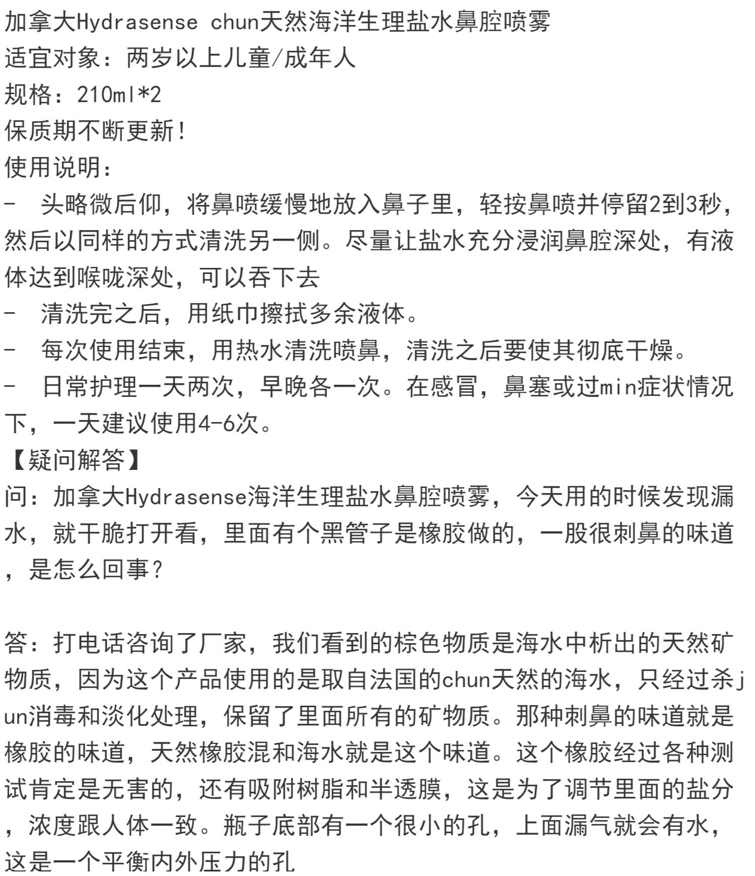 HydraSense 洗鼻水 海盐水 清洁鼻腔鼻炎鼻窦炎疗养用(加强型)特价囤货